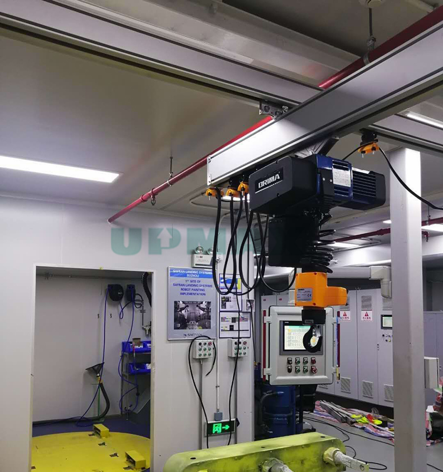 KBK剛性軌道特點:昂瑪UPMAX組合式梁式起重機采用剛性結構設計,這種設計較KBK柔性梁式起重機有著較為明顯的優(yōu)勢:吊架和軌道的連接方式(1)昂瑪UPMAX組合式起重機的吊架采用剛性結構設計,而柔性梁系統(tǒng)的吊架結構