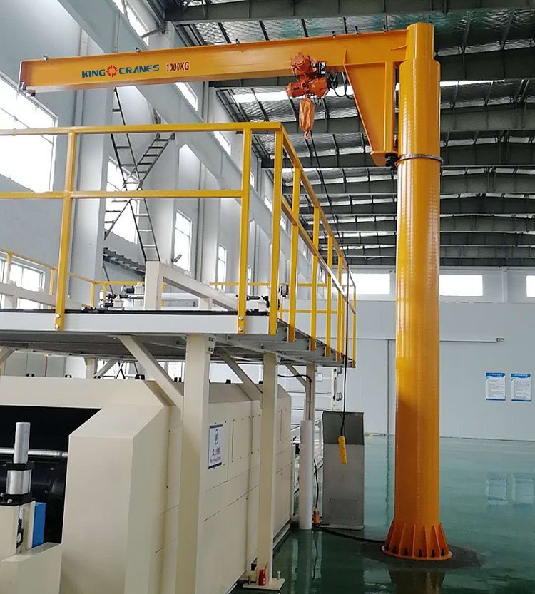 懸臂起重機的重量很輕。起重機由立柱,旋臂回轉(zhuǎn)驅(qū)動和電動葫蘆計劃組成。柱的下側(cè)牢固地固定在混凝土上。擺線小齒輪減速裝置用于驅(qū)動懸臂式后懸架,電動葫蘆。在懸臂工字梁上,必須在悲