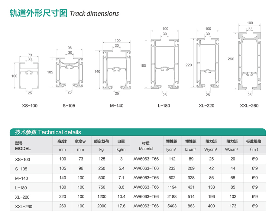 鋁合金軌道的型號以及規(guī)格參數(shù)