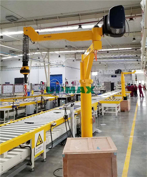 懸臂吊工作強度為輕形,起重機由立柱,回轉臂回轉推動設備及電動葫蘆構成,立柱下方根據(jù)螺栓螺母固定不動在混泥土基本上,由擺線針減速機降速設備來推動懸壁回轉,電動葫蘆在懸臂工型鋼上作上下平行線運作,并吊裝吊物。起重機懸臂為中空鋼材構造,自身重量輕,跨距大,吊重大,經(jīng)濟發(fā)展經(jīng)久耐用。內(nèi)藏式升降機構,選用帶滾